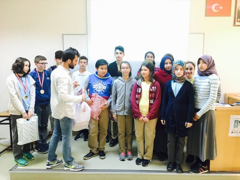 Ortaokul 7. Sınıflar Arası VI. Matematik ve Zeka Soruları Bilgi Yarışmasını düzenleyen Arş. Gör. Dr. Mithat Takunyacı ve Arş. Gör. Özkan Ergene ile Topluma Hizmet Uygulamaları Dersi H-I-K grubu öğrencilerine emekleri ve çalışma gayretleri için teşekkür ederiz.